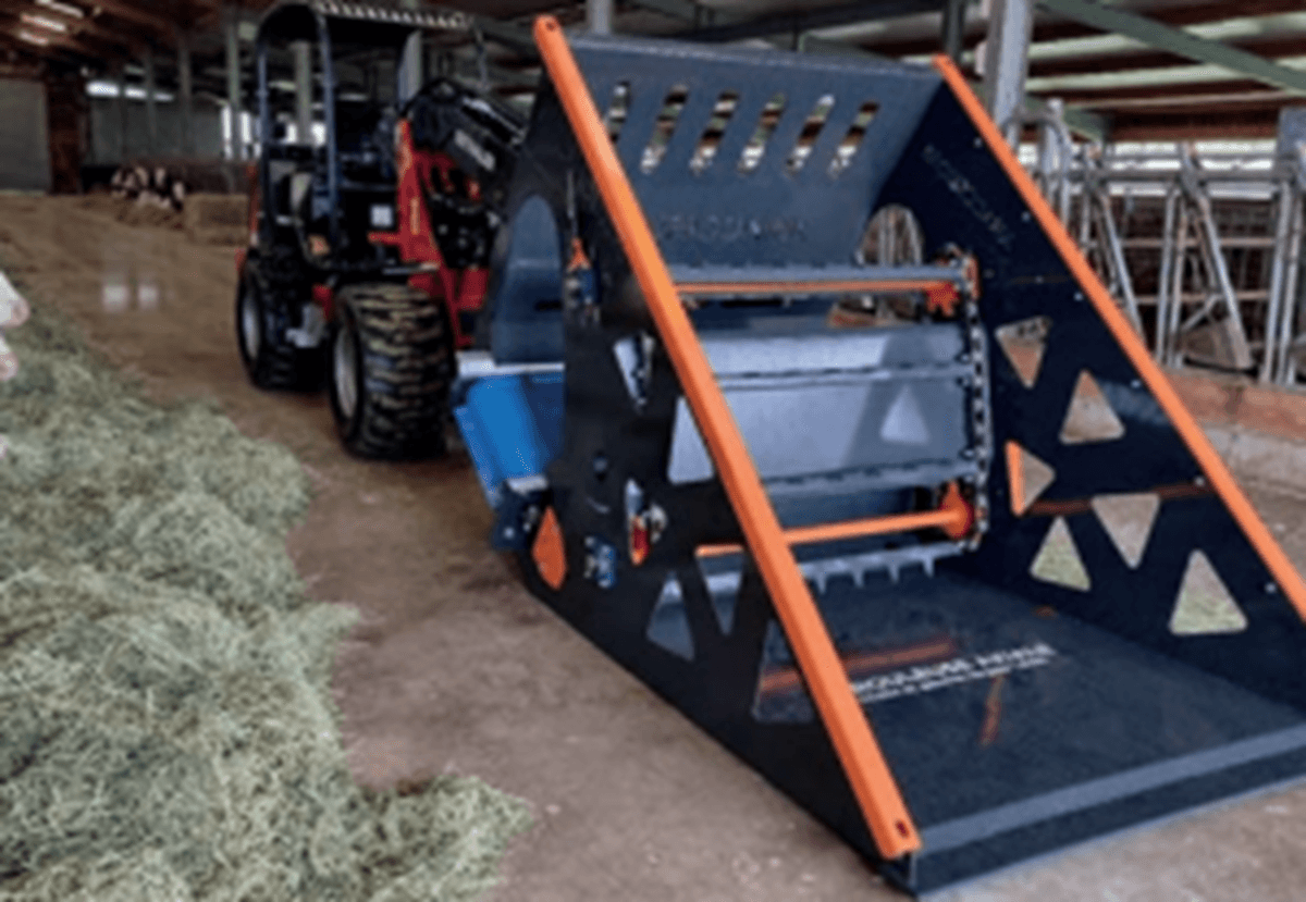 Idéale pour les bottes de foin, regain, enrubannées ou paille. Charge une botte directement du sol et son tapis de déroulage grosse chaine distribue à gauche et à droite +/- 50 cm. Son aspect peu encombrant s’adapte aux espaces réduits et est parfait pour un valets de ferme à partir de 50 cv ou un tracteur à partir de 80 cv. 1,60 m de largeur et 2,7 m de longueur pour une hauteur de 2,7 m.