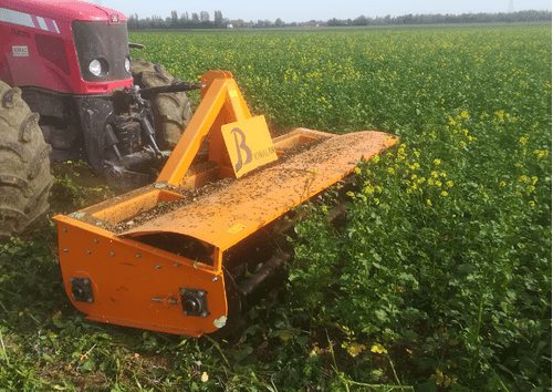Le rouleau BIOLA est une révolution dans le domaine des rouleaux hacheur et a une largeur de 3 m à 9 m. A utiliser dans différents types de couverts des développés au moins développés sur graminés ou légumineuses. Possibilité de choisir le rendu de défibrage après le passage de l’outil grâce aux pignons interchangeable et ainsi faire valider la démultiplication entre les rouleaux pour permettre d’optimiser au maximum e couvert et choisir le degré de défibrage, réaliser un broyage afin de détruire intégralement le couvert. Il travaille la plante toujours debout ce qui permet d’être léger car les lames n’ont pas besoin de faire contre couteaux avec le sol.