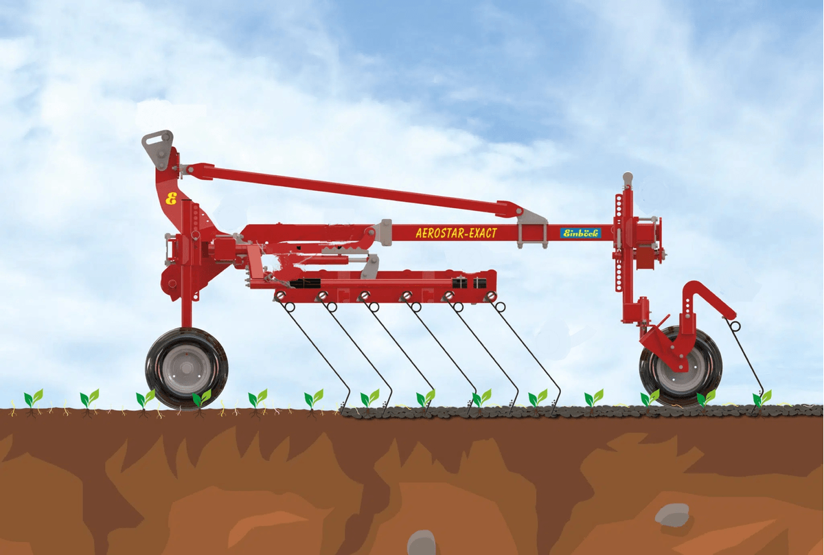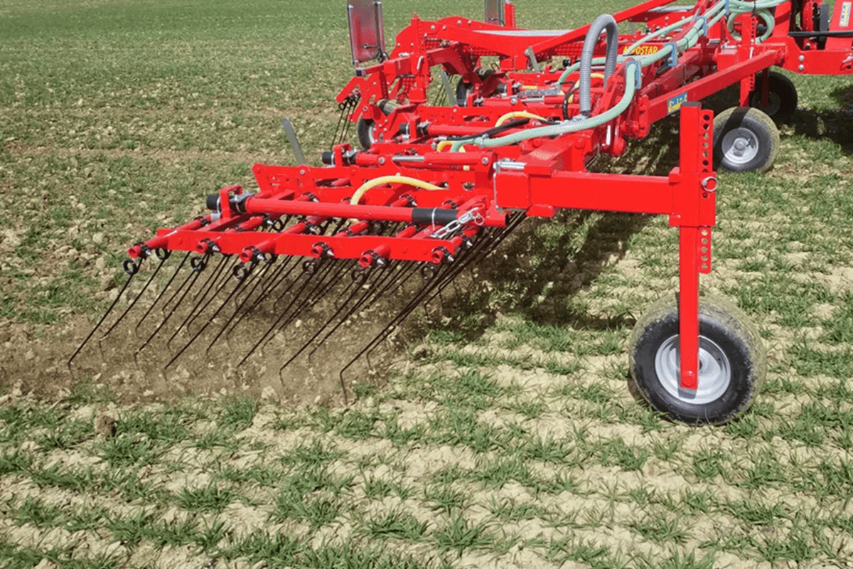 La gamme AEROSTAR EXACT est une herse étrille de précision équipée de dents longues de 600 mm de longueur et de 7 mm de diamètre qui permettent de s’adapter à la configuration du sol et d’étriller à un stade avancé de la culture.