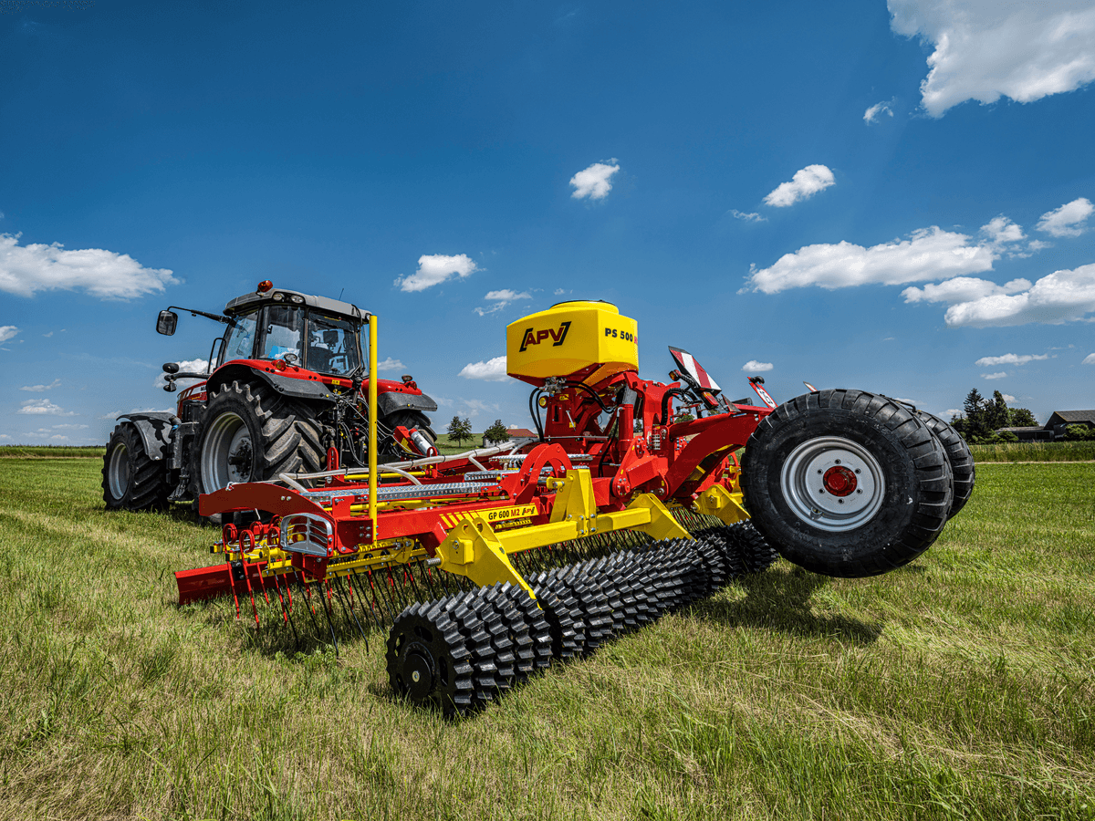 5 - Rouleau de prairie GW pour les grandes cultures. Combinaison possible avec une herse frontale ou un semoir APV (PS ou MD). Rouleaux Cambridge 390 mm ou 530 mm ou rouleau denté 410 mm créent une structure de lit de semences friable et de bonne qualité Compartiment à outils intégré dans le cadre