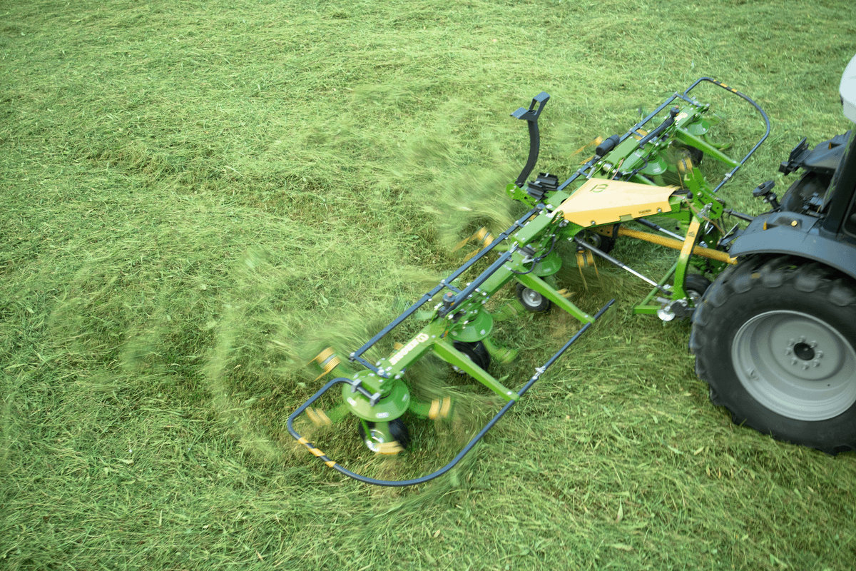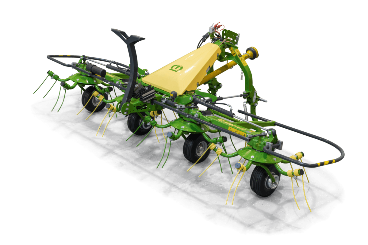 Une gamme de faneuses à toupies portée conçue pour des conditions montagneuses. Attelage 3 points Cat. II près du tracteur pour une meilleure adhérence et une grande stabilité. Stabilisateurs hydrauliques pour une plus grande facilité de manœuvre. Le nombre de rotors est de 4, 6 ou 8 en fonction du modèle avec 5 bras porte dents par rotor. Largeur de travail 4,2 m, 6,2 m ou 8,2. Choix d’équipements en fonction des besoins de chacun.