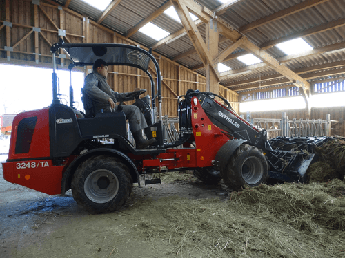 Une gamme complète de 19 à 72 cv. Bras standard télescopique, hauteur de levage de 2,5 à 4 m. Attelage euro. Hydrostatique Bosch Rexroth. Moteur Yanmar. Machine très bien équilibrée. Très bon rayon de braquage. Réglage hydraulique de la hauteur de l'arceau en option pour circuler dans les bâtiments bas.