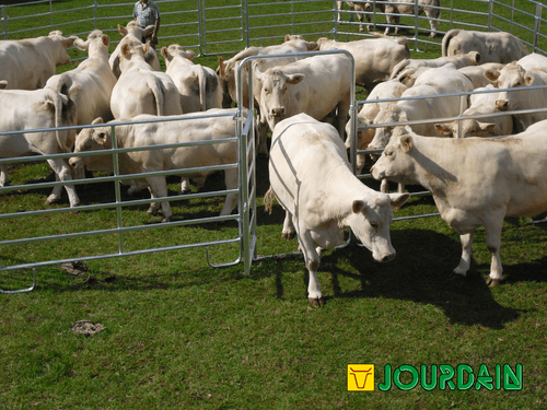 Barrière légère de contention pour bovins et chevaux permettant la réalisation simple et rapide de parcs mobiles de contention. Panel de contention fabriqué en tube ovale de 50 x 25 mm (extérieur) et 42 x 21 mm (intérieur). Entre tubes de 21 cm et hauteur de 1,57 m. 3 longueurs de panel possibles: 2,40 m, 3 m et 3,60 m.