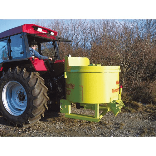 Attelage sur chariot élévateur. En fonction du modèle, la puissance requise de 40 cv à 120 cv et le diamètre de remplissage de 1 200 mm à 1 880 mm et avec un débit en une heure allant de : 7 m³ à 15 m³