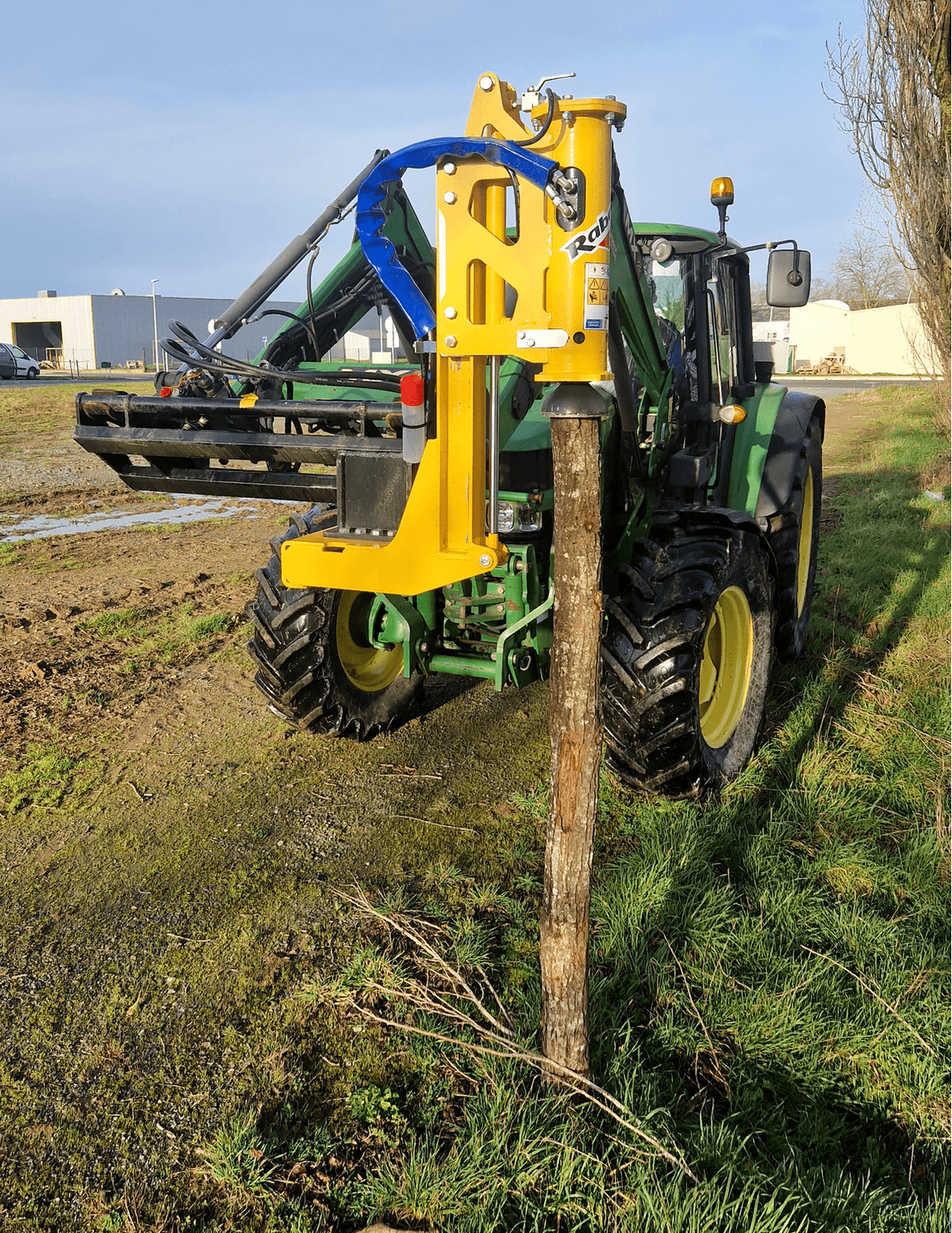 Adaptable sur mini-pelle, télescopique, chargeur frontal, chargeur compact. Nouveau marteau avec une grande fréquence de frappe. Marteau monté sur coussins amortisseurs pour supprimer les vibrations et réduire le bruit. Vérin de levée/descente pour une traction constante sur le piquet permettant son maintien et une grande force d’appui. Marteau à percussion monté sur un mât avec glissières antiusure en ertalon. Cloche de frappe robuste, forgée, usinée et traitée, Ø 150mm.