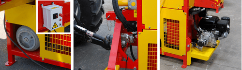 Fonctionnement : moteur électrique monophasé et triphasé, pompe du tracteur, PDF 430 tr/mn, moteur thermique essence selon le choix du modèle.