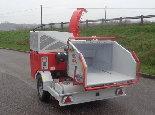 Moteur thermique essence ou diesel, prise de force, remorque routière. Accès très facile au rotor, au rouleau ameneur et à la contre lame par simple basculement de l’éjection. Choix d’options possible selon les besoins.