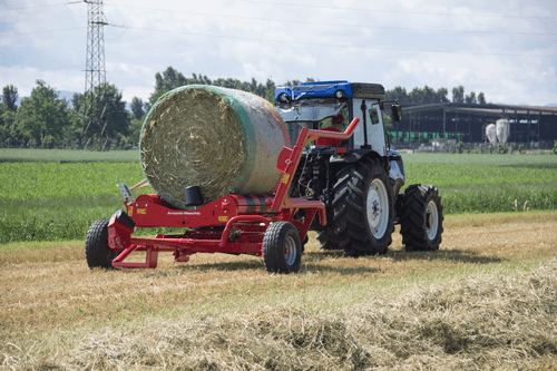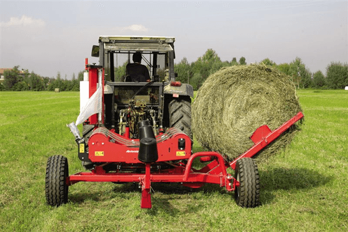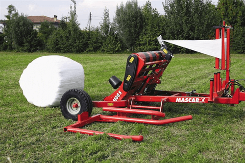 Bras de chargement, dérouleur 750mm, compte tours, kit de basculement de la balle et système automatique.
