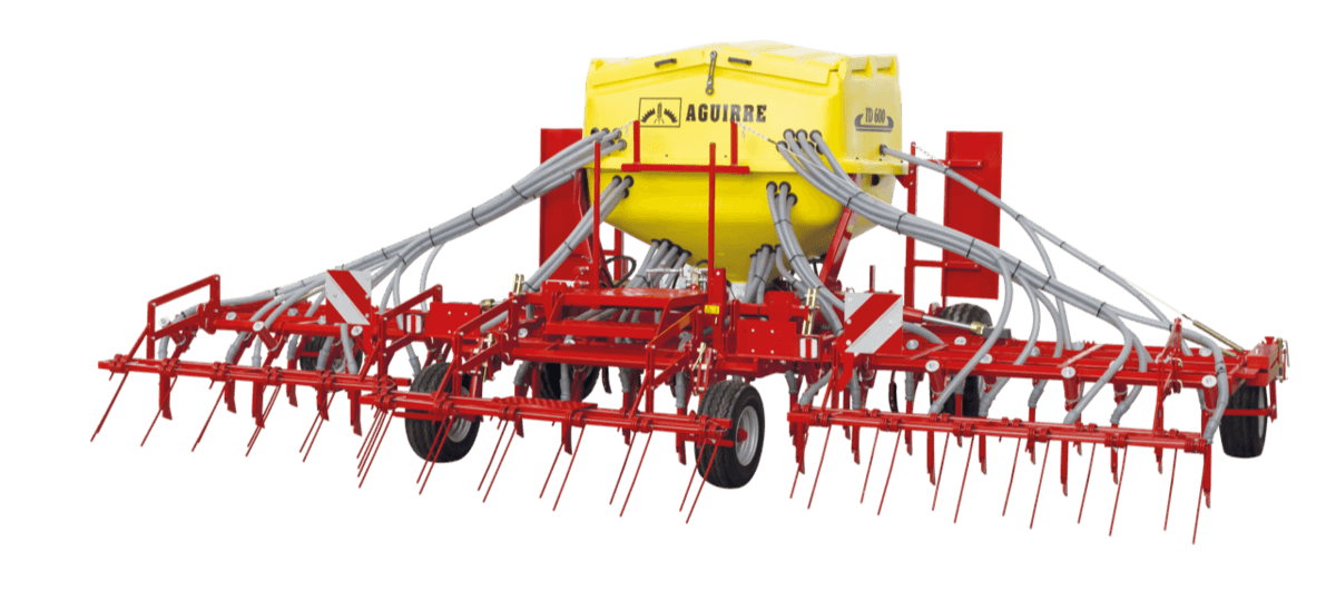 Semis direct ou TCS, largeur de travail 4 m. 25 Dents TD (160 kg de pression) carbure de tungstène sur châssis 4 rangées. Jeu de roues plombeuses, entraînement de la turbine par PDF, console de contrôle, sans traceur. Modèle en photo version 6m.