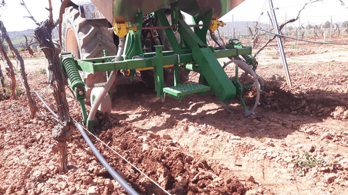 Semoir à vignes mécanique conventionnel de précision à soc, le GT MULTISEM avec distributeur à ergot double pour les graines fines et les grosses graines et bras indépendants sur 3 rangées. Avec variateur de vitesse. Contrôle de la profondeur par roues latérales, tubes de descente télescopiques et herse denté. Grande capacité de trémie 450 L ou 575 L selon modèle.