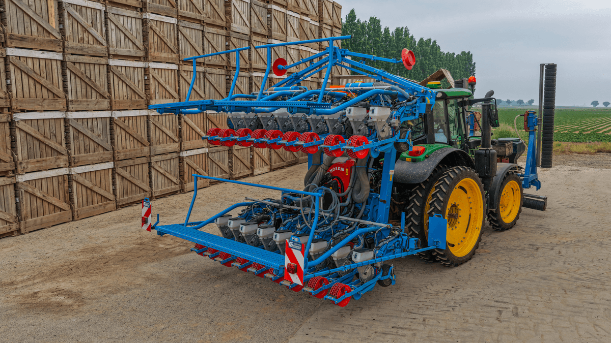 Semoir pour petites graines, 12, 15 et 18 rangs, avec inter-rang minimum de 20cm, sur châssis repliables. Largeur de travail maximale 6m (transport 3 à 3,5m). Architecture ISOBUS, entraînement électrique indépendant pour chaque rang. Courroie crantée sans entretien transmettant l’entraînement du moteur électrique au disque semeur. Doseurs MicroSmart, (technologie éprouvée sur les ValoTerra en grande culture) assurant une microgranulation rang par rang. Cellules de comptage des graines Seedwatch Mini permettant d’optimiser la vitesse de travail. Possibilité d’étalonnage depuis l’application smartphone Monosem Plus avec un d’un module optionnel. Compatibilité avec des fonctionnalités Isobus géolocalisées : coupure individuelle des rangs possible et modulation de doses par GPS.