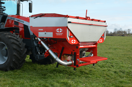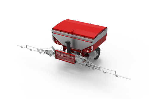 Trémie inox, cloisonnée et pressurisée 1 700 ou 2 300 L, grande ouverture pour faciliter le remplissage, doseur inox en simple ou double distribution, grande plage de débit grâce aux différentes bobines, entraînement hydraulique de la turbine, marche pied, disponible en version Isobus pour compatibilité coupure de tronçons et modulation de dose. Nombreuses options possibles (tasse-avant auto-directionnel, rampe frontale, tête de répartition, kit de distribution…).