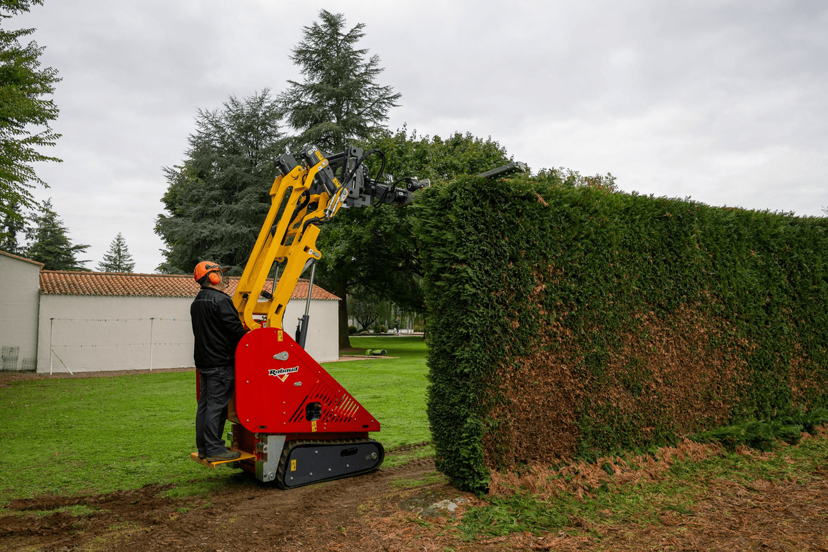 Porte outils ultra compact sur chenilles pour tous types de terrains qui assemble puissance, maniabilité et polyvalence. Pour les besoins des espaces verts, BTP etc… Bras hydraulique multifonction avec levage jusqu’à 2,10 m et capacité de 890 kg avec un vérin de cavage sur l’attache pour plus de précision et de polyvalence et qui peut recevoir une large gamme d’accessoires pareils qu’un lamier pour la taille, un godet, un enfonce pieux, une fourche à palette, une balayeuse, broyeur etc…