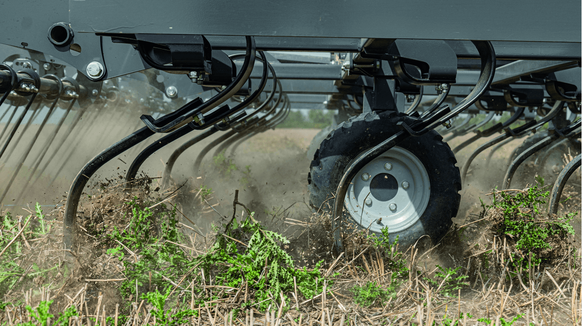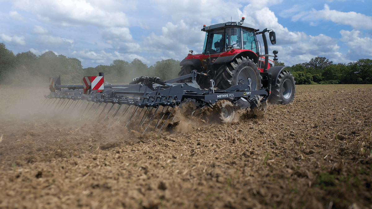 Le METHYS PCS est un déchaumeur scalpeur porté ou trainé à dents avec 4 rangées de dents qui travaille à vitesse élevée (6 à 10 km/h) sur des quantités importantes de plantes à détruire et scalpe les racines sur toute sa largeur en les mettant à l’air sans les rappuyer. La herse arrière est équipée de 3 rangées de dents vibrantes. Profondeur de travail de 2 à 11 cm. Existe en 5 largeurs : 3 m, 4 m et 6 m en version portée et 6 m, 8 m en version trainée. Avec un dégagement sous châssis de 750 mm et l’espacement entre les rangées de dents pour laisser passer de grandes quantités de végétaux également à vitesse élevée.