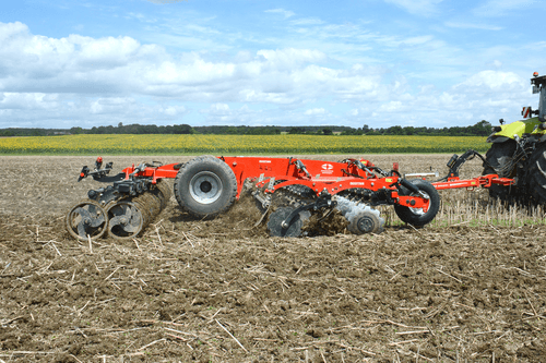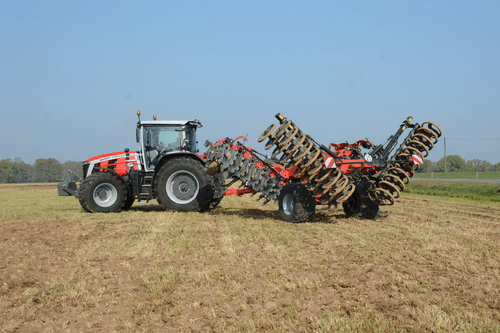 De 4,20 à 8,20m de largeur de travail. De 36 à 68 disques, Ø 620mm en écartement de 230mm. Des paliers sans entretien pour une longévité maximale. Une meilleure pénétration avec la sécurité non-stop ressort sur chaque bras. Dégagement 725mm sous bâti et jusqu'à 1350mm entre les 2 rangées de disques, pas de risque de bourrage même en présence de beaucoup de résidus végétaux ! Réglage hydraulique de la profondeur. 8 rouleaux au choix. Pour tracteurs de 125 à 450CV.