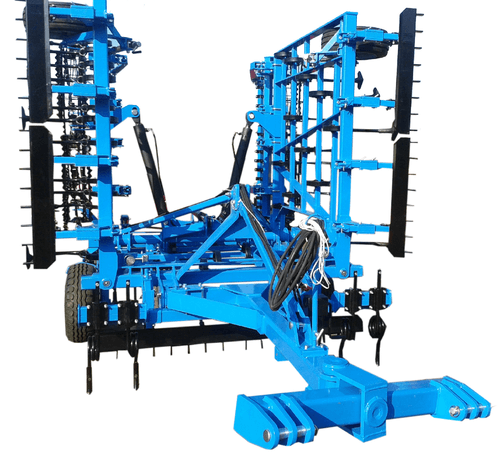 Largeur de transport inférieure à 3,0m. Profondeur de travail : à 13cm. Repliage hydraulique pour le transport à partir de 4,0m. Largeur de travail de 3 m à 5,5 m. Puissance requise de 80 à 160 cv. Blocage mécanique pour le transport. Efface traces. Choix d’équipements en options pour chaque utilisateur.