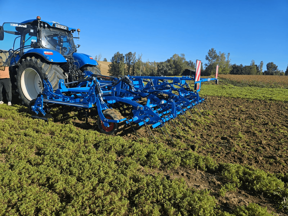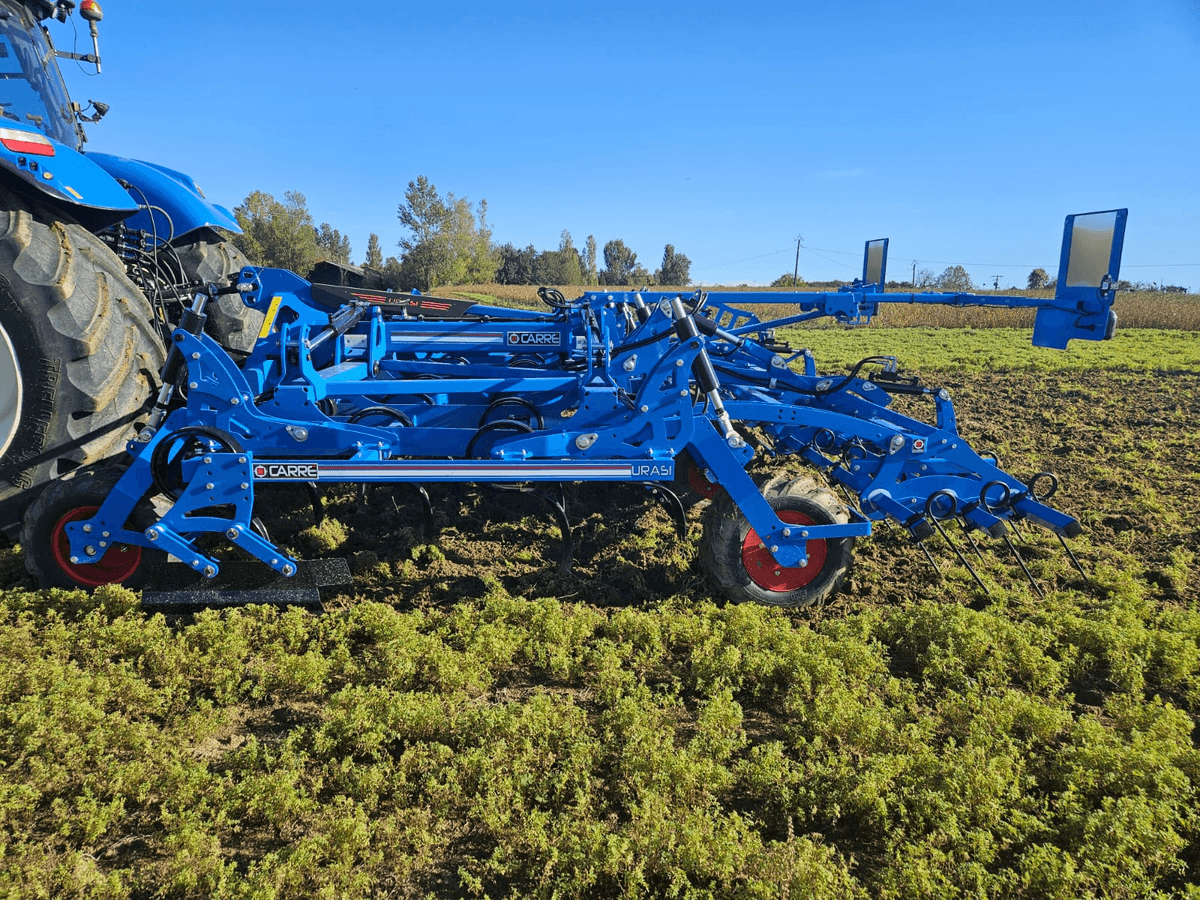 La répartition des dents sur 4 rangées et son dégagement sous châssis important, lui confère un flux de travail inégalable. Il est équipé de dents 80x12 mm avec contre ressort pour garantir une profondeur de travail constante. L’utilisation de soc triangulaire de 250 mm plat laisse un sol parfaitement travaillé à chaque passage du scalpeur. Le réglage indépendant de la hauteur des roues de contrôle avant et arrière permet de garantir une profondeur de travail constante et un suivi optimal du relief. La herse peigne arrière à réglage hydraulique montés sur 3 barres permet de remettre le racinaire des résidus en surface sans risque de reprise. Le tout est facilement contrôlable depuis la cabine grâce à un boîtier, pour un confort et une maîtrise totale de vos opérations. Disponible en version fixe et repliable portée 3 points de 3 à 6m.