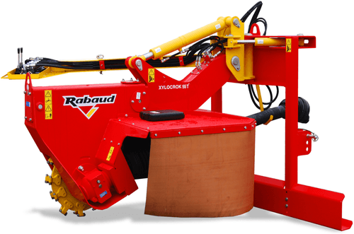 Disque 12 ou 18 dents, selon modèle, épaisseur 20 mm, avec dents taille 5, 7 ou 9 pouces au carbure, diamètre 343 mm ou 395 mm. Les dents peuvent être tournées 3 fois pour plus de durée.