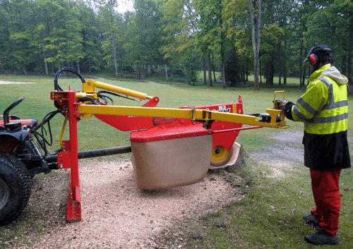 Tablier réglable en hauteur pour optimiser les capacités de fraisage de la rogneuse.