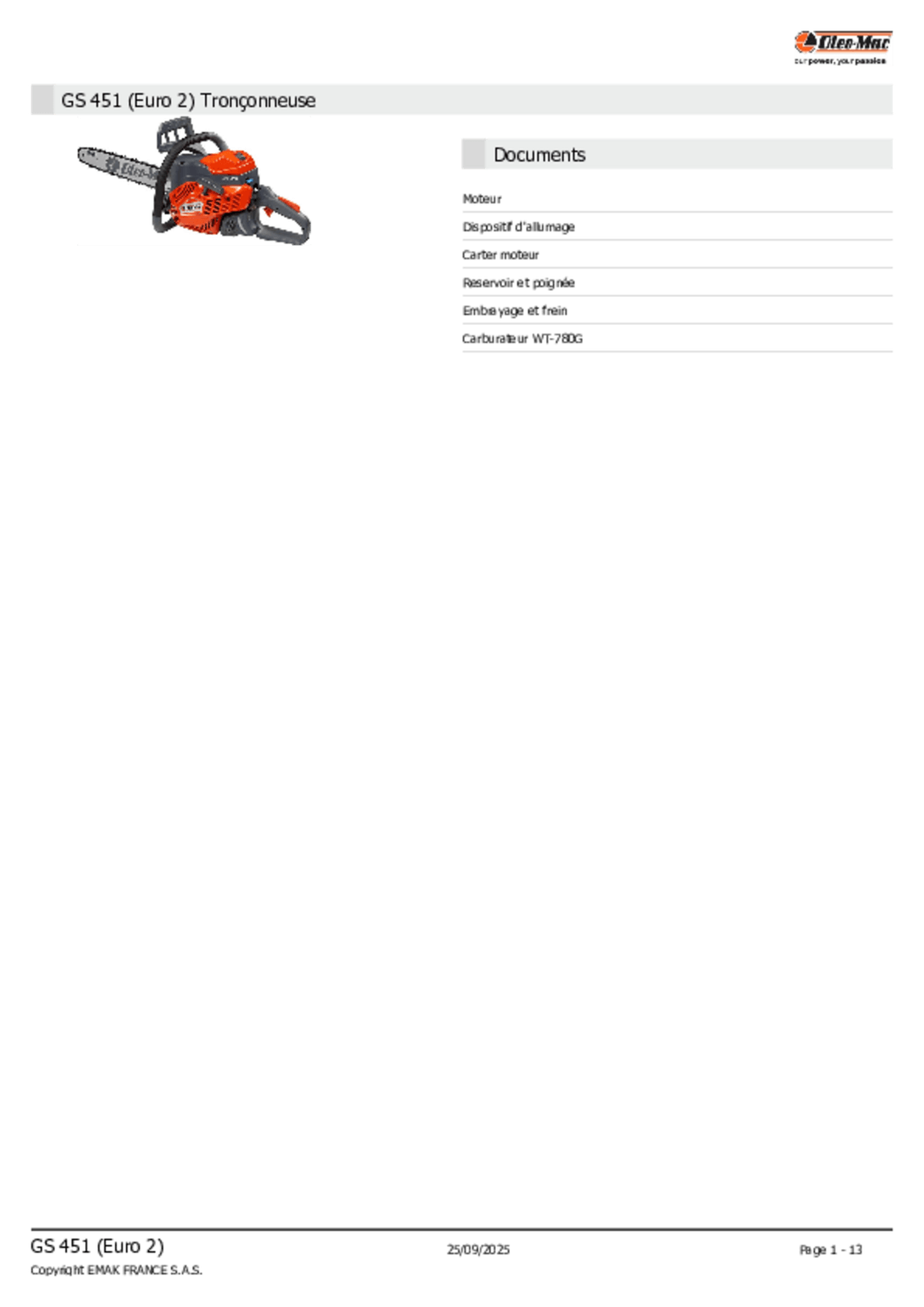 Vitesse de chaîne 18 m/s à 9 000 tr/min.