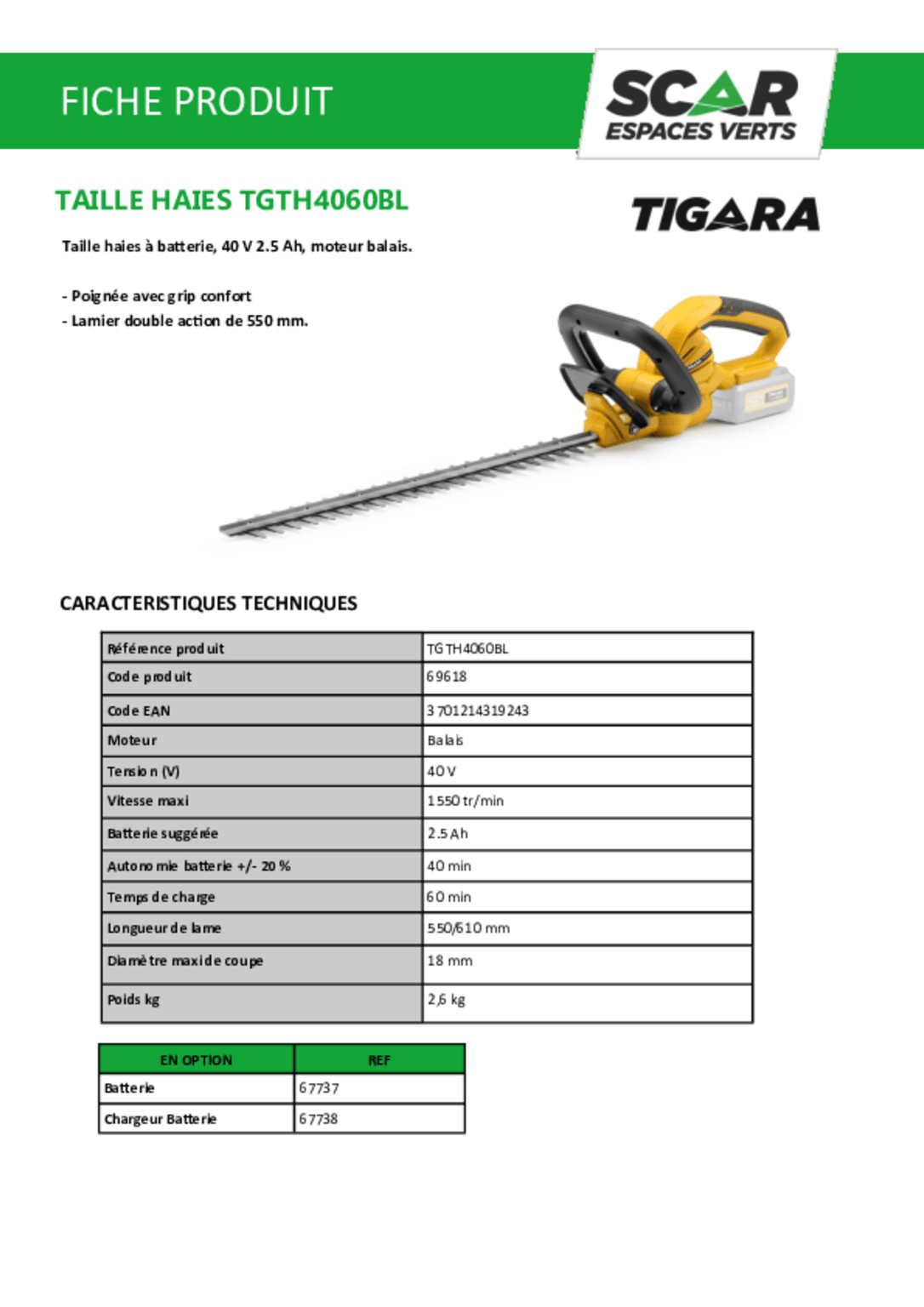 Longueur de lame : 550/610 mm.