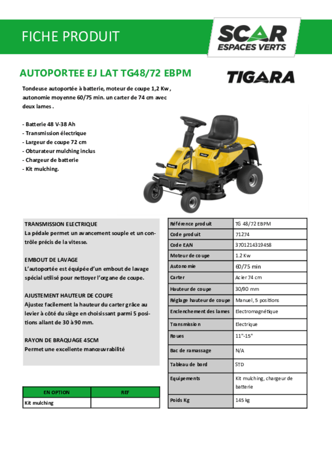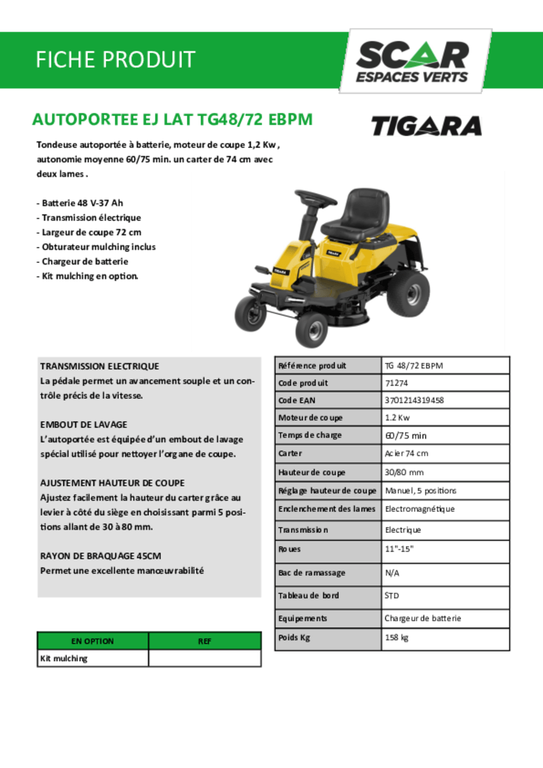 - Tondeuse autoportée à batterie RIDER TG 48/72 EBPM