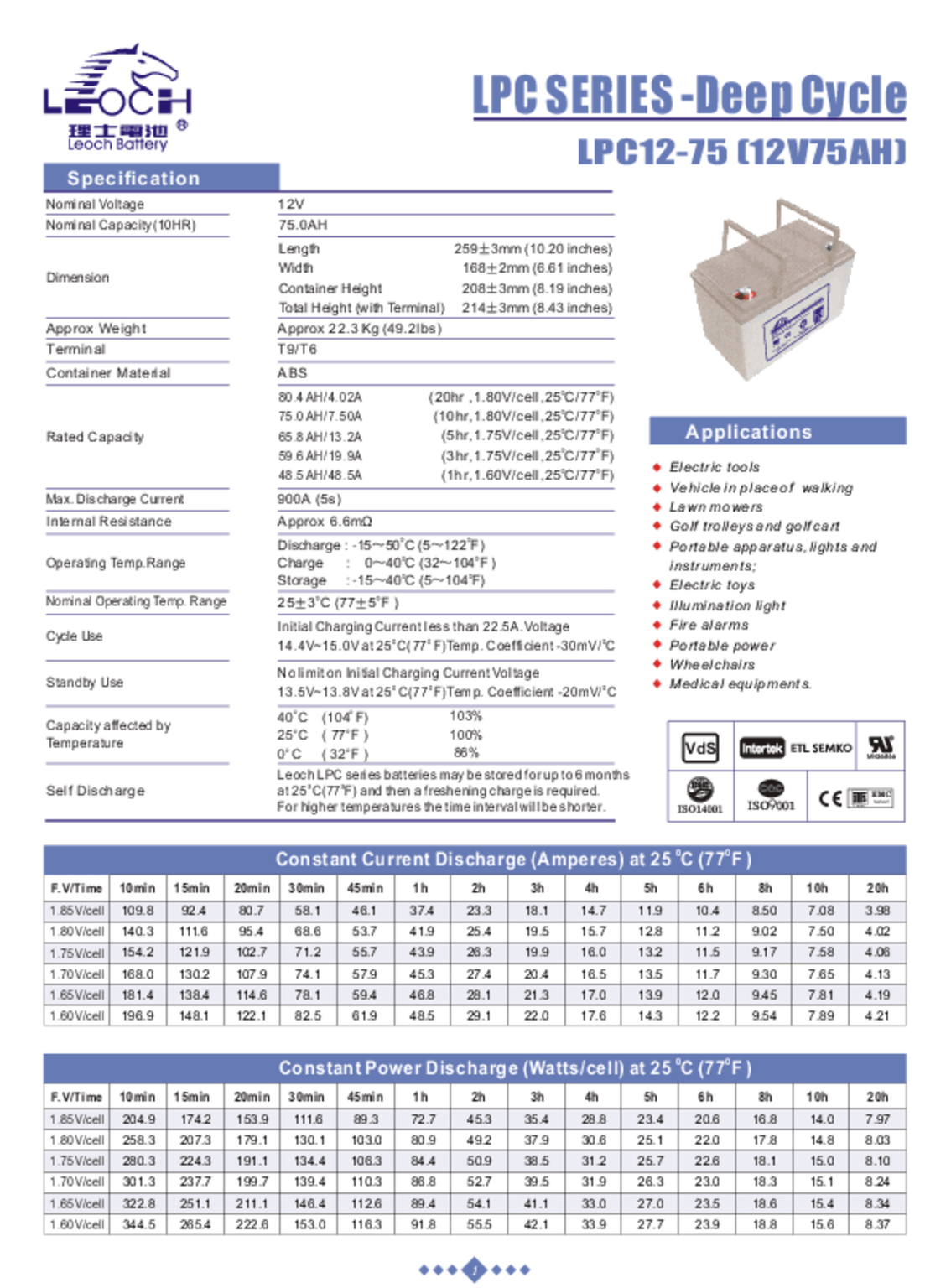 Livrée avec 4 batteries plomb 75 AH/48 V et 1 chargeur.