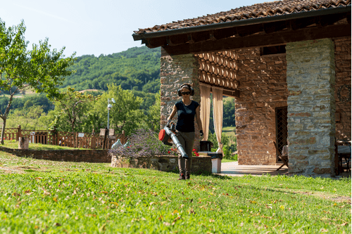 BV 250. Moteur 2 temps EURO 5. Cylindrée 25,4 cc. Puissance 1,3 kW. Pression & débit : Débit 720 m³/h. Vitesse de l'air 70 m/s. Capacité du réservoir 0,45 L . Système anti-vibrations. Tube télescopique, avec embout bec de canard. Démarrage facile EasyOn. Kit d'aspiration en option. Poids : 5,87 kg.