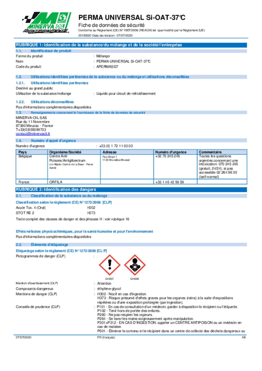 - Liquide de refroidissement SI OAT - 37°C 5 L
