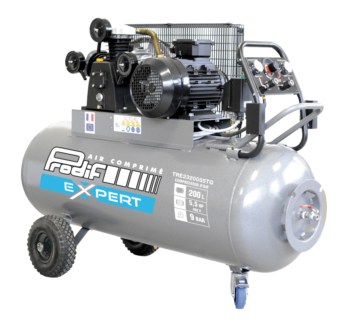 Débit aspiré : 585 L/min, débit restitué : 450 L/min, 9 Bar.