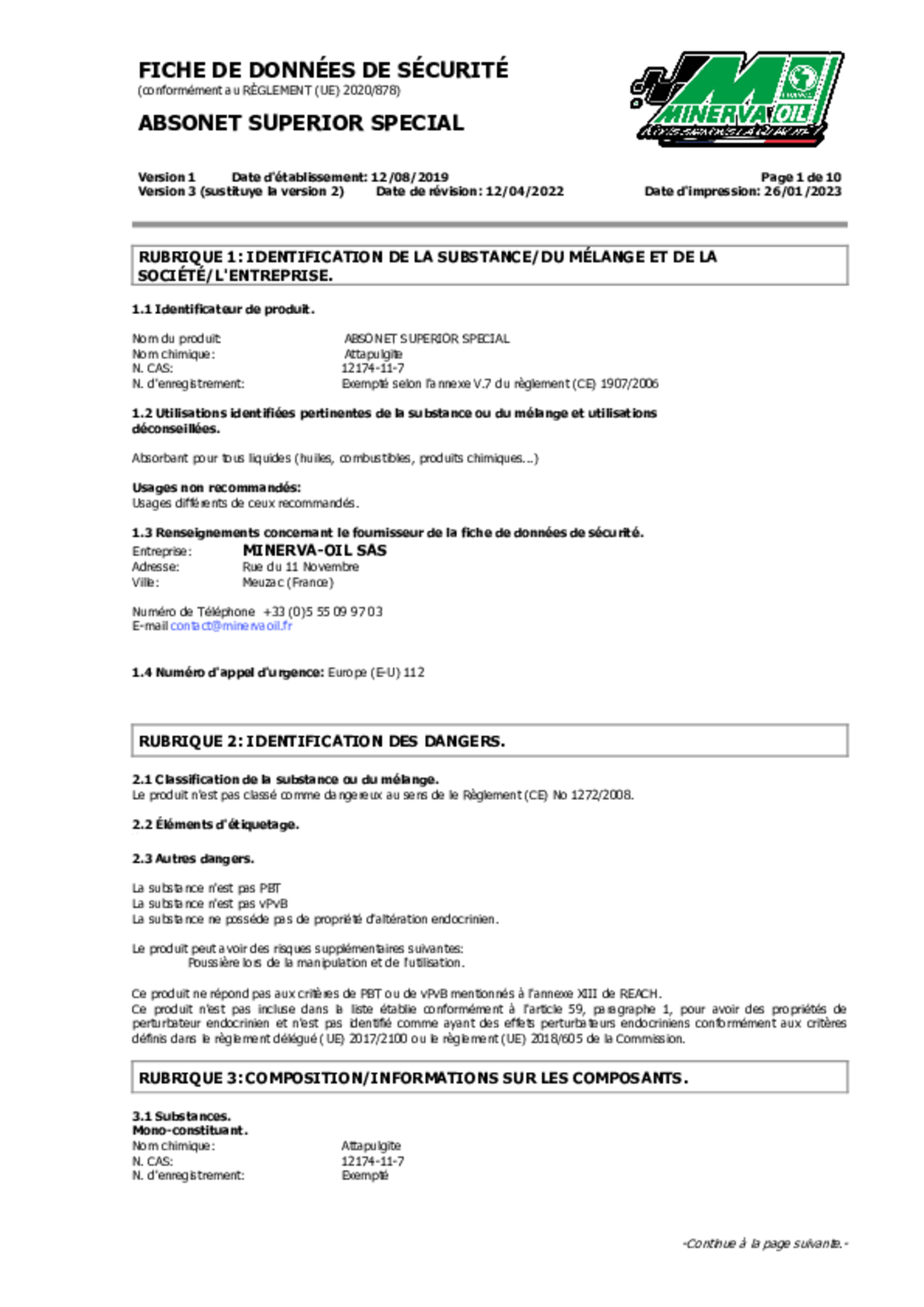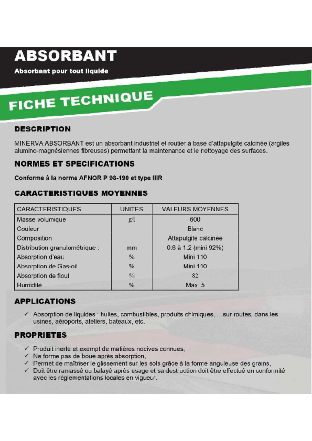 Absorbant industriel et routier à base d'attapulgite calcinée permettant la maintenance et le nettoyage des surfaces.