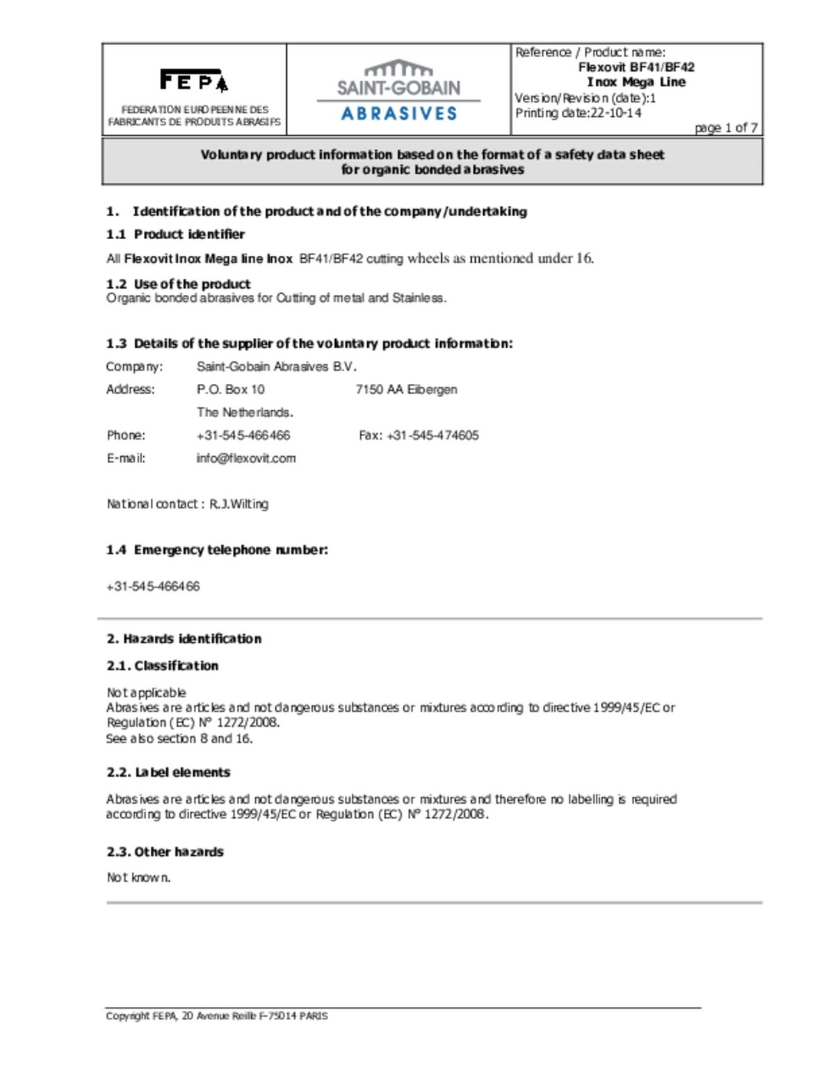 - Disque à meuler acier 230 x 7 x 22,23 mm