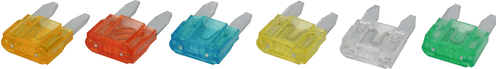 Mini fusibles : 20x5A, 20x10A, 20x15A, 20x20A, 20x25A, 20x30A.