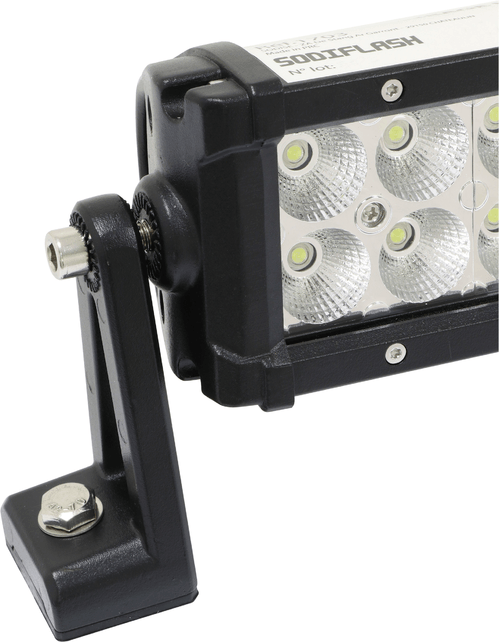 10-32 V. Corps en alliage daluminium, lentille en polycarbonate. Faisceau combiné : éclairage large et longue portée. Dimensions : 561 x 79,46 x 75,63 mm. Inclinable 20° - 60°. Livré avec support de fixation. Existe en 72 W réf. 65178 et 180 W