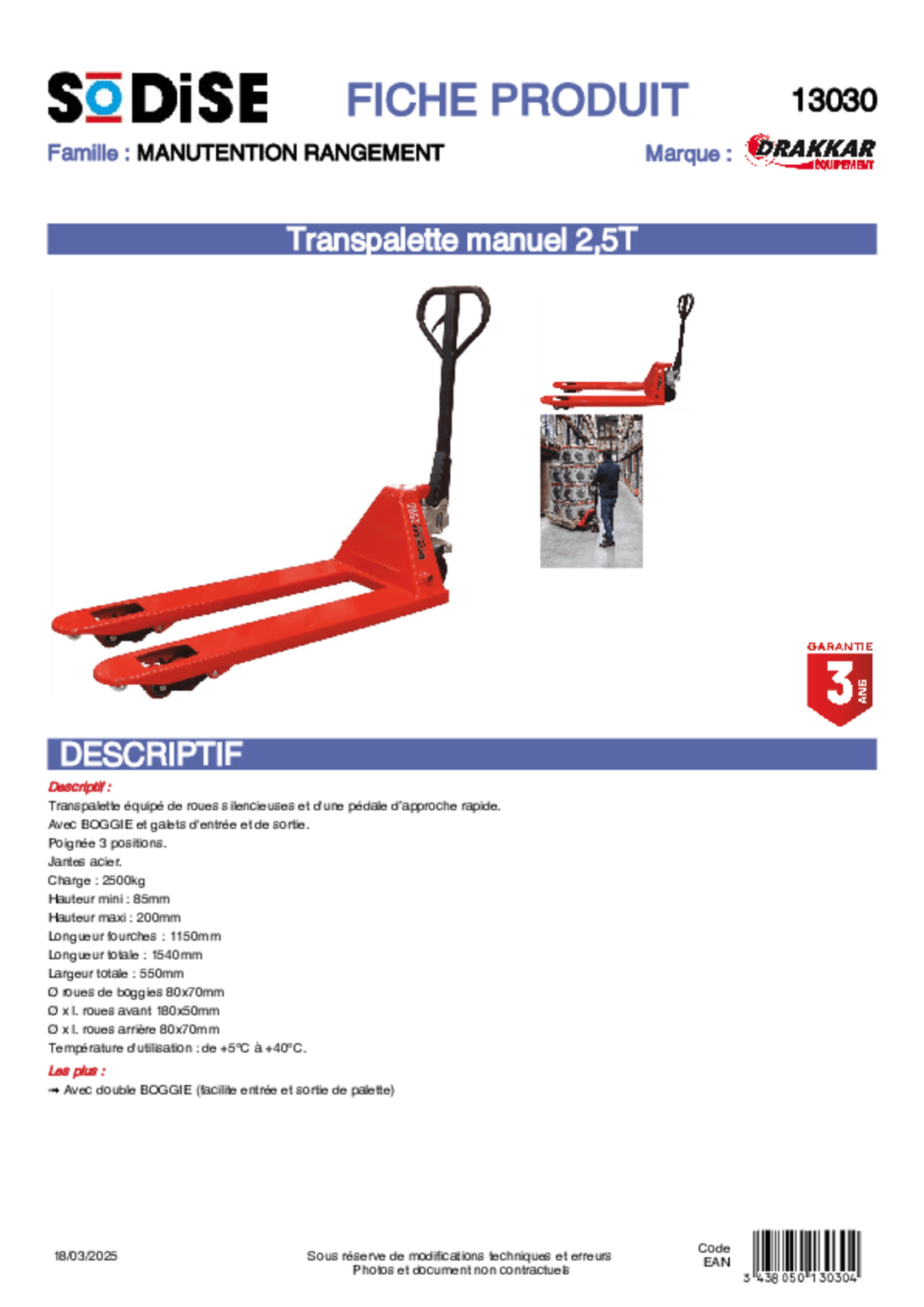 Transpalette manuel 2,5T