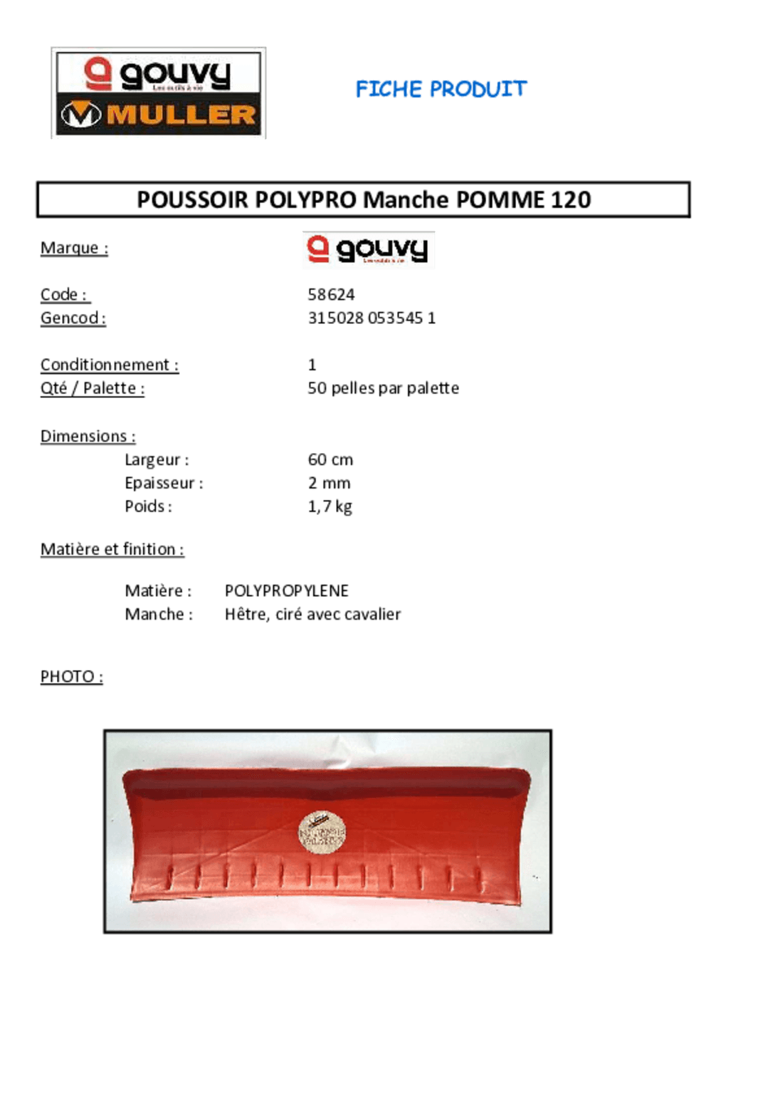 S'utilise dans les 2 sens : pour pousser et racler