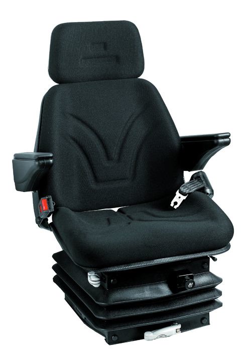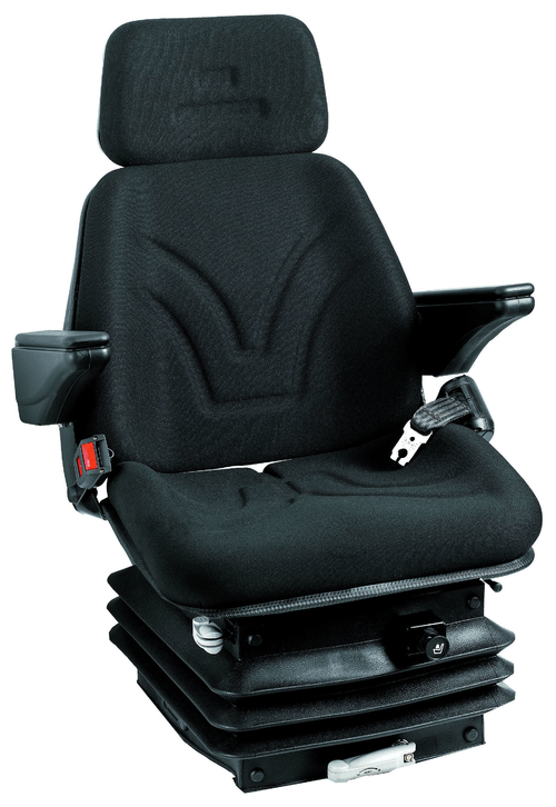 Suspension conforme aux dernières normes et homologations Européennes CEE 78/764CLASSE A-III. Compresseur 12 V intégré dans la pension pneumatique. Homologué pour machines TP selon les normes ISO7096 EM1-EM3. Pièces de rechange assurées. Pour tout tracteur supérieur à 80 ch. Réglage : poids : 50-120 kg, dossier 0°-15°, hauteur : 60 mm. Tissu noir.
