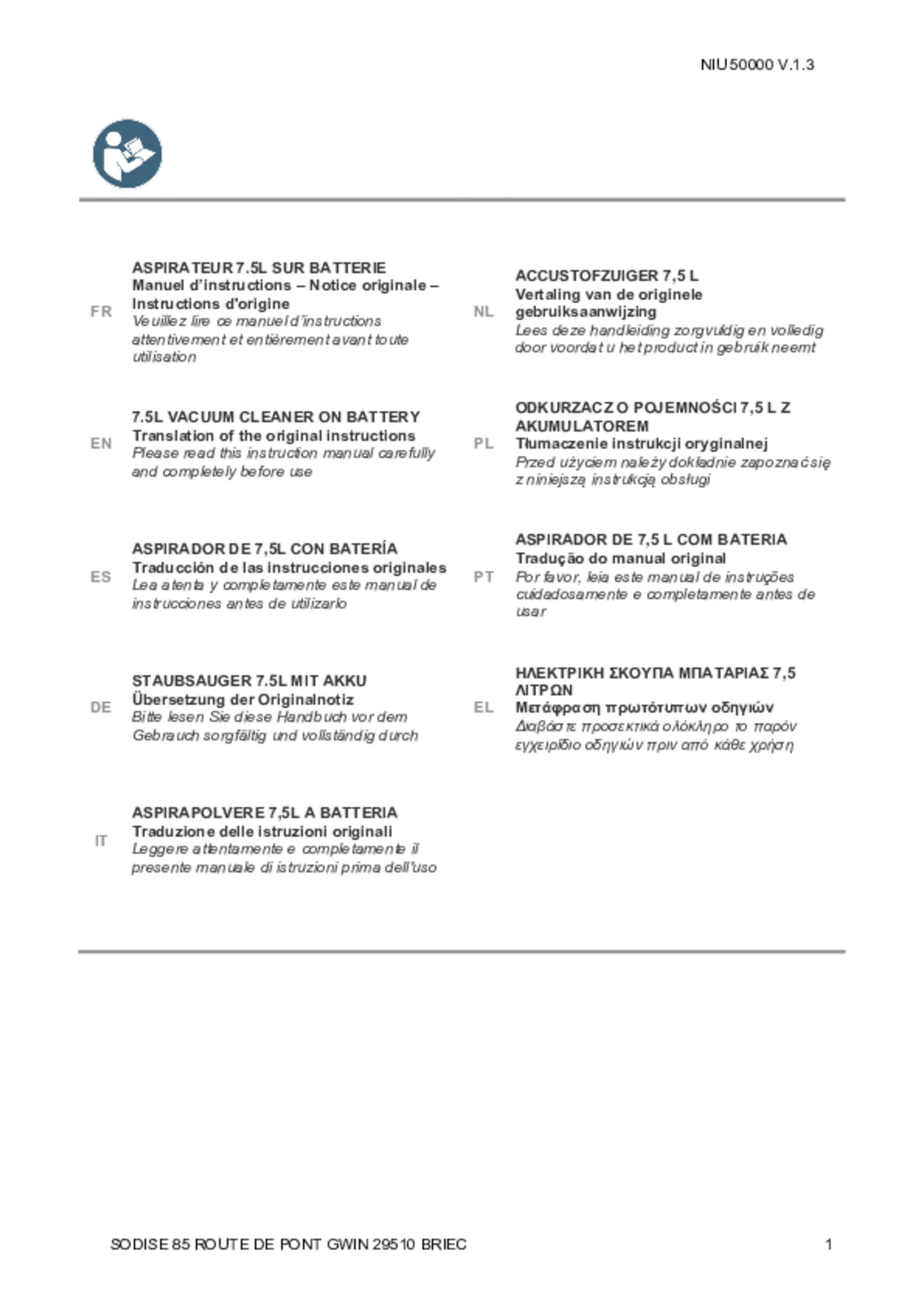 Livré avec : 1 tuyau extensible 0,95 à 2,6 m, 1 suceur plat large coudé, 1 suceur biseau, 1 brosse ronde, 1 filtre HEPA, 1 chargeur 0,4A et 1 batterie 2Ah.