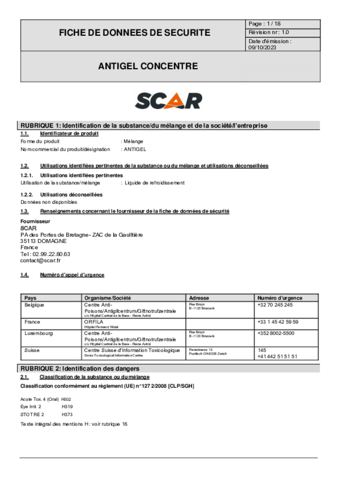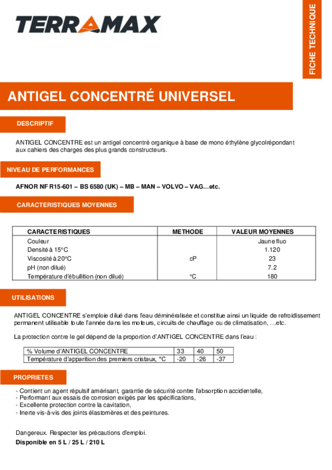 Antigel organique inhibé. A base de mono-éthylène glycol. Prêt à l’emploi.